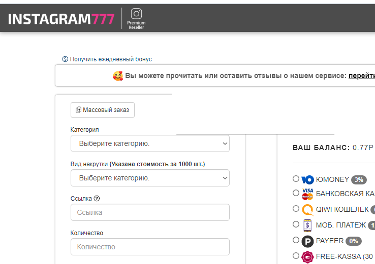 Сервис о котором пойдет речь Instagram777.ru У них есть реферальная система, но я решил не размещать рефку.