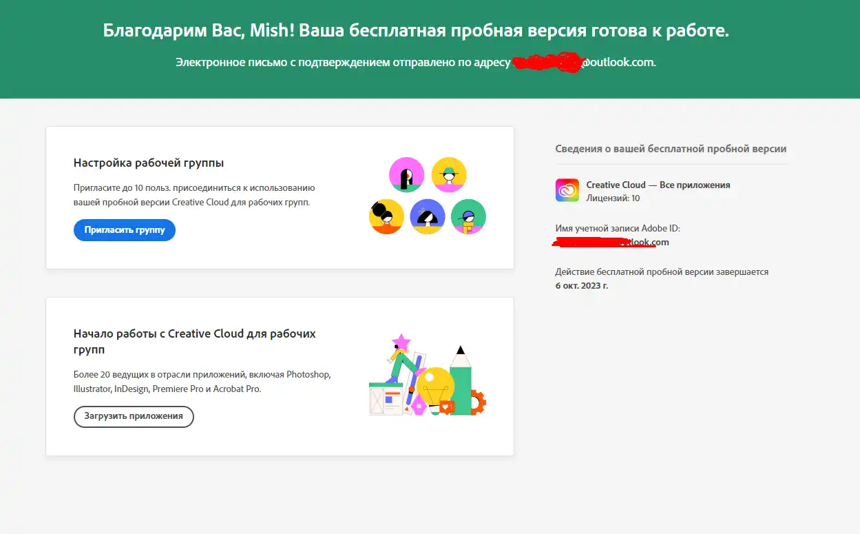 Теперь тебе доступны все продукты от Adobe на 14 дней.